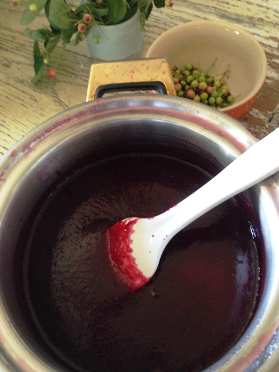 一緒に マルベリーも少しだけ・・・ ぐつぐつ煮ることに・・・・