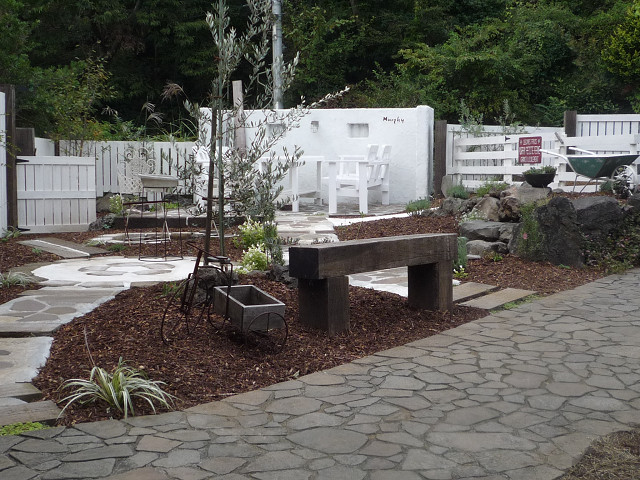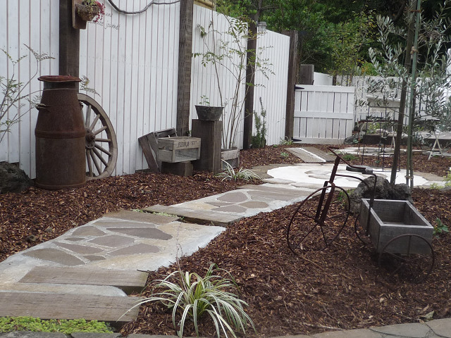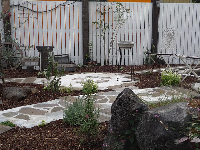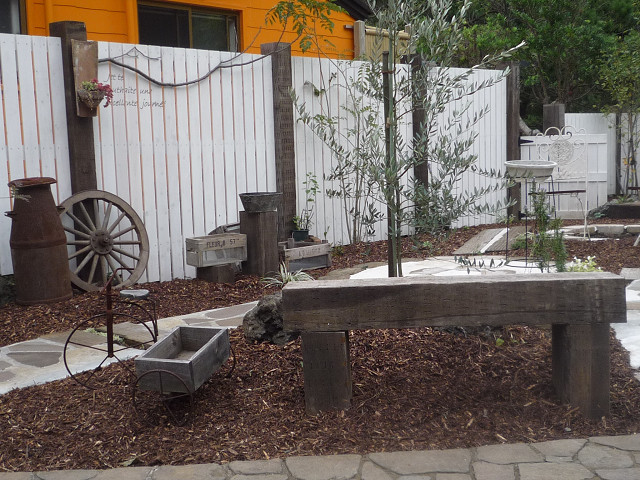 フェンスの色を塗ったり 芝生やウッドチップをひいたりと