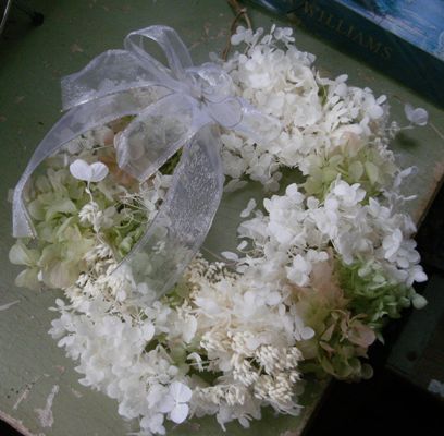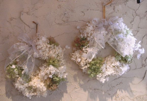 教室で花嫁さんみたいな ふわふわのリースを造りました。