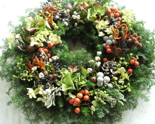 今年のリースはこんな感じ。去年は ピンクっぽかったのですが