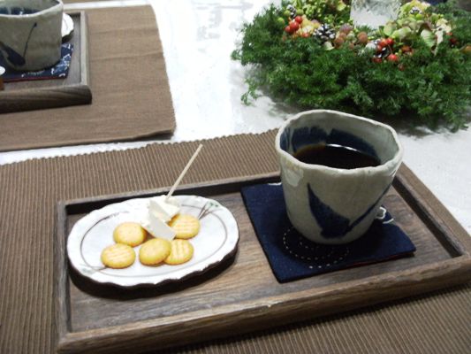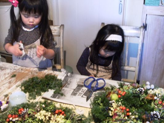 真ん中に 作ったばかりのリースをおいて・・・・