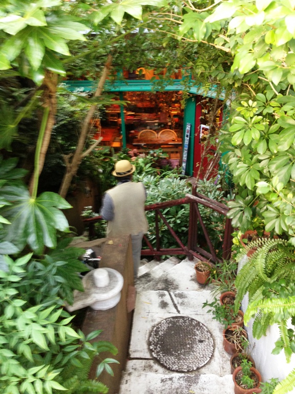 地下に降りていく階段の周囲は緑で覆われています。