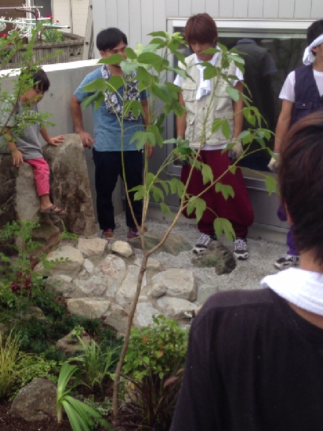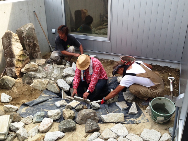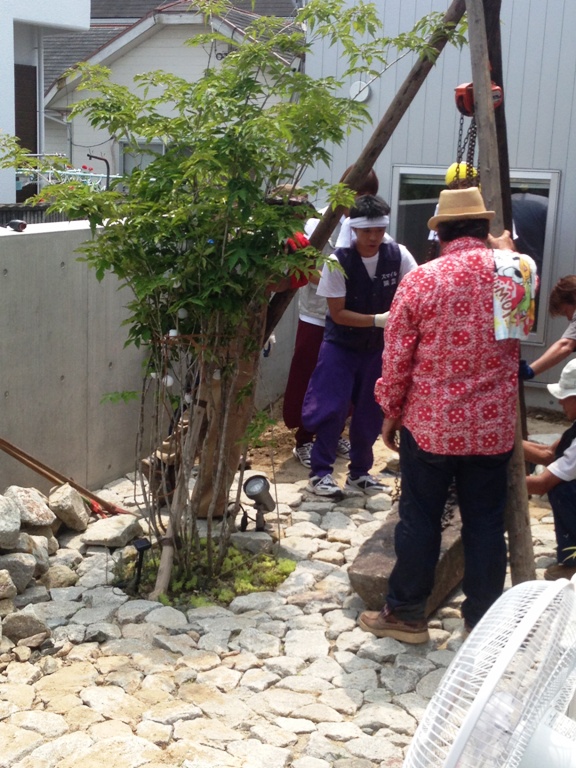 和風庭園を作るべく 猛暑の中 石をどける作業・・・・