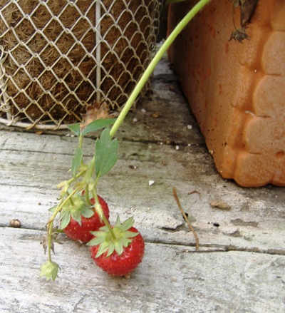 庭になったイチゴ。かなりすっぱい